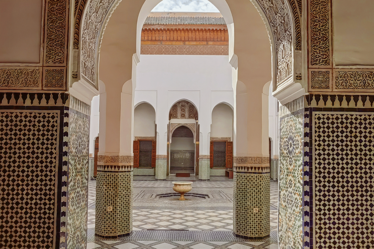 After breakfast, visit the Taourirt Kasbah and the UNESCO World Heritage Site of Ait Benhaddou, a backdrop for many famous films. Continue over the Tichka Pass to reach Marrakech, known as the “Red City.” Arrive in Marrakech and check into your riad for a relaxing evening.